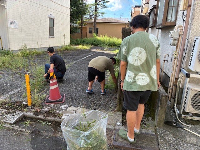 「今回の清掃では、あの駐車場の雑草をなんとかしたい!」 参加メンバーに発破をかけて、いざ、草むしりスタートです!
